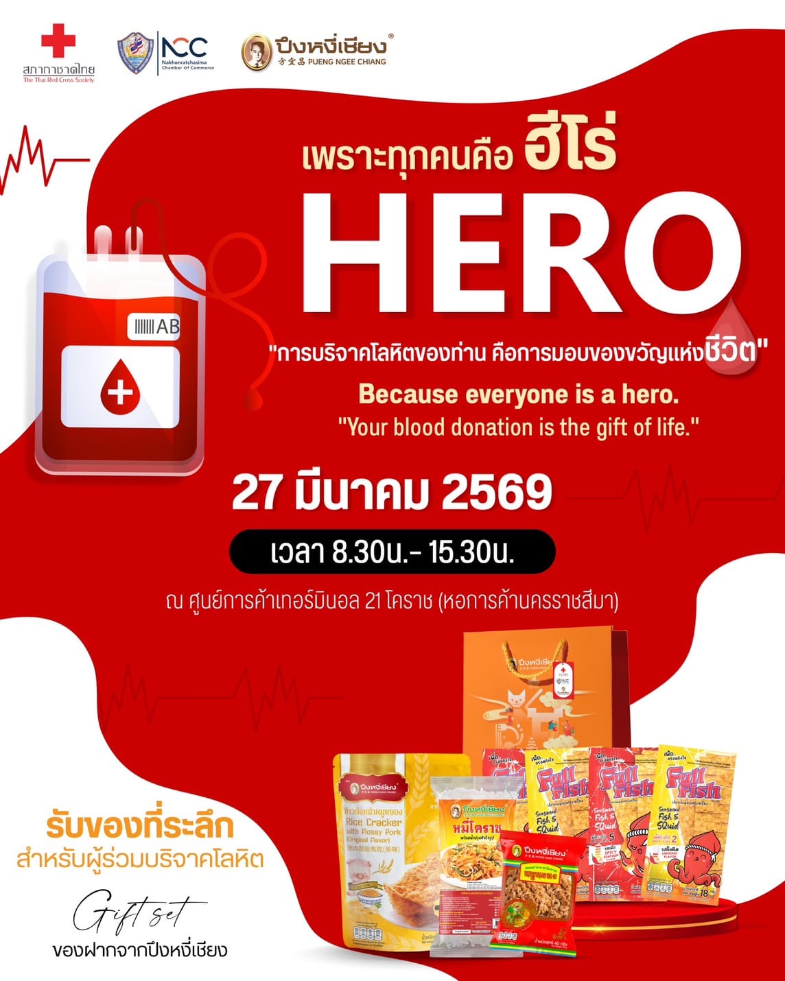 สำหรับผู้ร่วมบริจาคโลหิต ในโครงการ โคราชไม่ขาดเลือด "ตามรอยวีรสตรี ทำดีด้วยการให้เลือด" เนื่องในเดือนฉลองวันแห่งชัยชนะท้าวสุรนารี