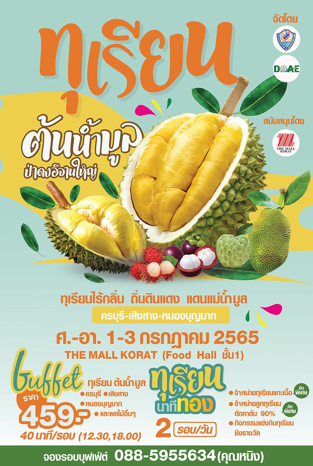 บุฟเฟ่ต์ ทุเรียนหมอนทอง "ต้นน้ำมูลเขตป่าดงอีจานใหญ่" แหล่งปลูกทุเรียนพันธุ์หมอนทอง ในพื้นที่ 3 อำเภอ ครบุรี-เสิงสาง-หนองบุญมาก.
