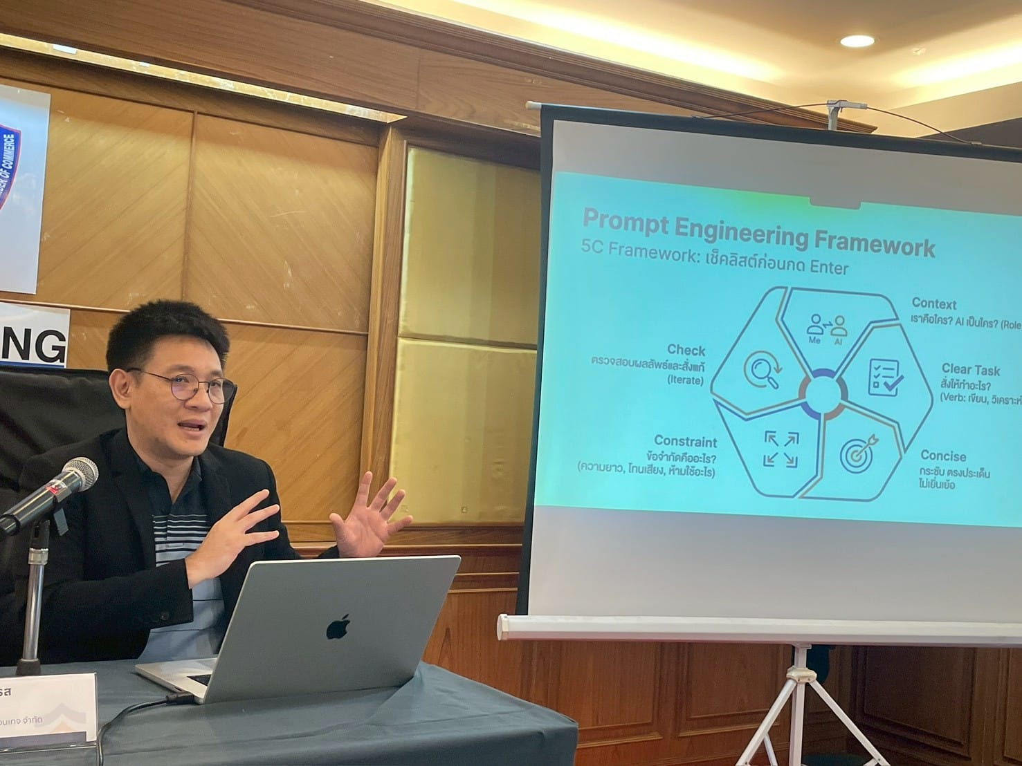 จัดอบรมให้สมาชิกหอการค้าในหัวข้อการอบรม Ai AI FOR BUSINESS TRANSFORMATION : FROM PROMPT TO PROFIT