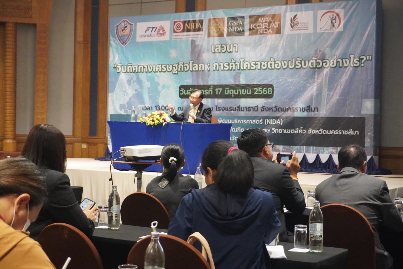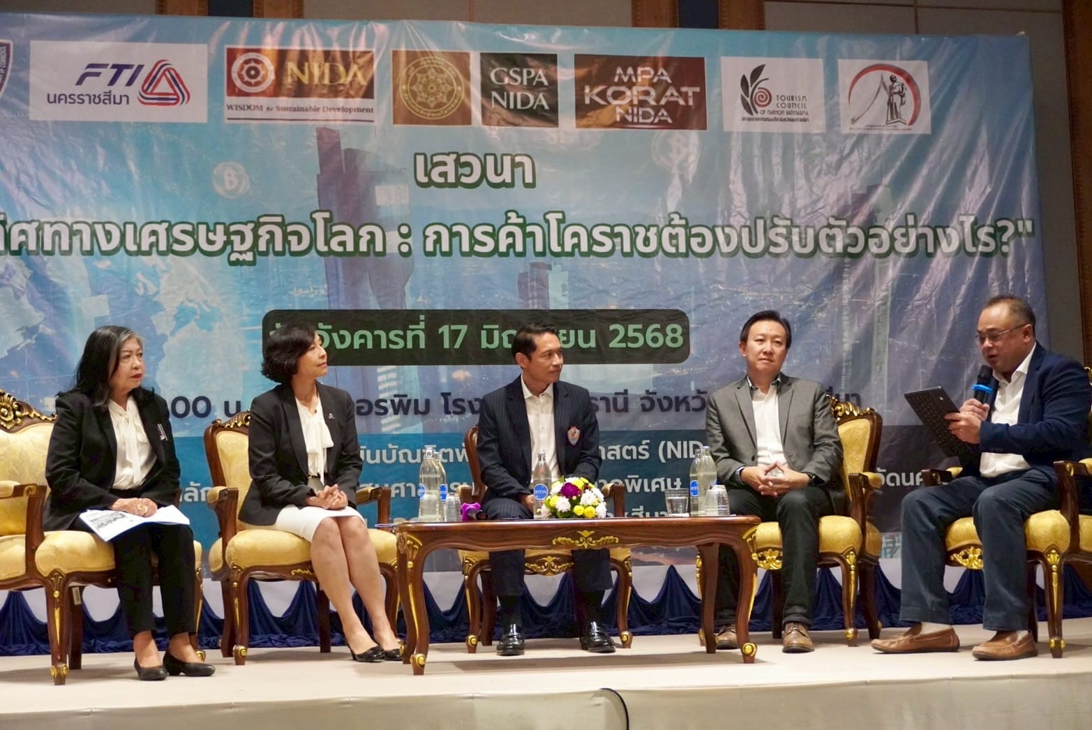 วันนี้ (17 มิ.ย. 68) เวลา 13.30 น. ณ โรงแรมสีมาธานี จังหวัดนครราชสีมา หอการค้าจังหวัดนครราชสีมา ร่วมกับ สถาบันบัณฑิตพัฒนบริหารศาสตร์ (NIDA) จัดกิจกรรมเสวนาวิชาการ “จับทิศทางเศรษฐกิจโลก : การค้าโคราชต้องปรับตัวอย่างไร?” ภายใต้หัวข้อหลัก “ทิศทางเศรษฐกิจ การค้า ท่องเที่ยวของโคราช : โอกาสและการปรับตัว” โดยได้รับเกียรติจากนายชัยวัฒน์ ชื่นโกสุม ผู้ว่าราชการจังหวัดนครราชสีมา เป็นประธานในพิธี พร้อมด้วย นายไพจิตร มานะศิลป์ ประธานหอการค้าจังหวัดนครราชสีมา ,นางธิดารัตน์ รอดอนันต์ ประธานสภาอุตสาหกรรมจังหวัดนครราชสีมา ,ดร.วัชรี ปรัชญานุสรณ์ ประธานสมาคมธุรกิจท่องเที่ยวจังหวัดนครราชสีมา , คุณณัฐพงษ์ ประสารศิริพงษ์ นายกสมาคมอสังหาริมทรัพย์จังหวัดนครราชสีมา ,นางสุบงกช วงศ์วิชยาภรณ์ ประธานกิตติมศักดิ์หอการค้าฯ , คณะกรรมการหอการค้าฯ , หน่วยงานภาคเอกชน , สมาชิกหอการค้าฯ และสื่อมวลชน ร่วมงานเสวานาในครั้งนี้.กิจกรรมเริ่มต้นด้วย ปาฐกถาพิเศษ หัวข้อ “ทิศทางเศรษฐกิจครึ่งปีหลัง 2568 : โอกาสทางธุรกิจ” โดย รศ.ดร.มนตรี โสคติยานุรักษ์ ผู้อำนวยการหลักสูตร วิทยาการการจัดการสำหรับนักบริหารระดับสูง (วสบส.) NIDAจากนั้นเป็นช่วง เสวนาวิชาการ หัวข้อ “ทิศทางเศรษฐกิจ การค้า ท่องเที่ยว ของโคราช : โอกาสและการปรับตัว” โดยวิทยากรผู้ทรงคุณวุฒิในพื้นที่ ประกอบด้วย •คุณไพจิตร มานะศิลป์ ประธานหอการค้าจังหวัดนครราชสีมา•คุณธิดารัตน์ รอดอนันต์ ประธานสภาอุตสาหกรรมจังหวัดนครราชสีมา•ดร.วัชรี ปรัชญานุสรณ์ ประธานสมาคมธุรกิจท่องเที่ยวจังหวัดนครราชสีมา•คุณณัฐพงษ์ ประสารศิวมัย นายกสมาคมอสังหาริมทรัพย์จังหวัดนครราชสีมาดำเนินรายการโดย ดร.อนันต์ โพธสนิทวัฒน กรรมการผู้จัดการ บริษัท สมาร์ททีม เอชอาร์วิส จำกัด และอุปนายกด้านวิชาการ สมาคมผู้สําเร็จหลักสูตร วสบส. NIDA