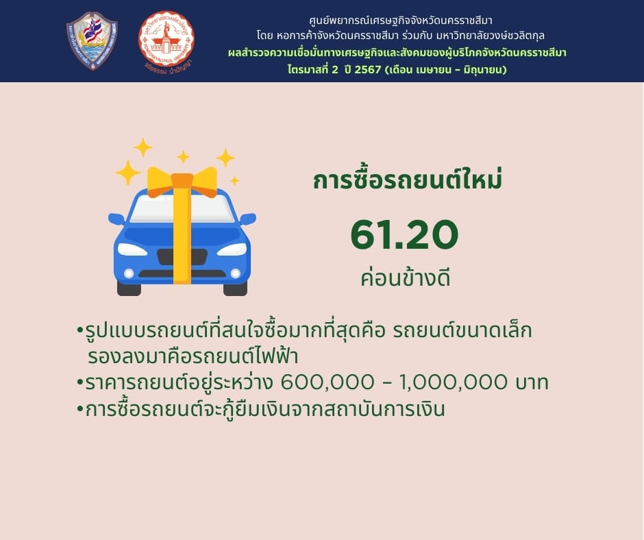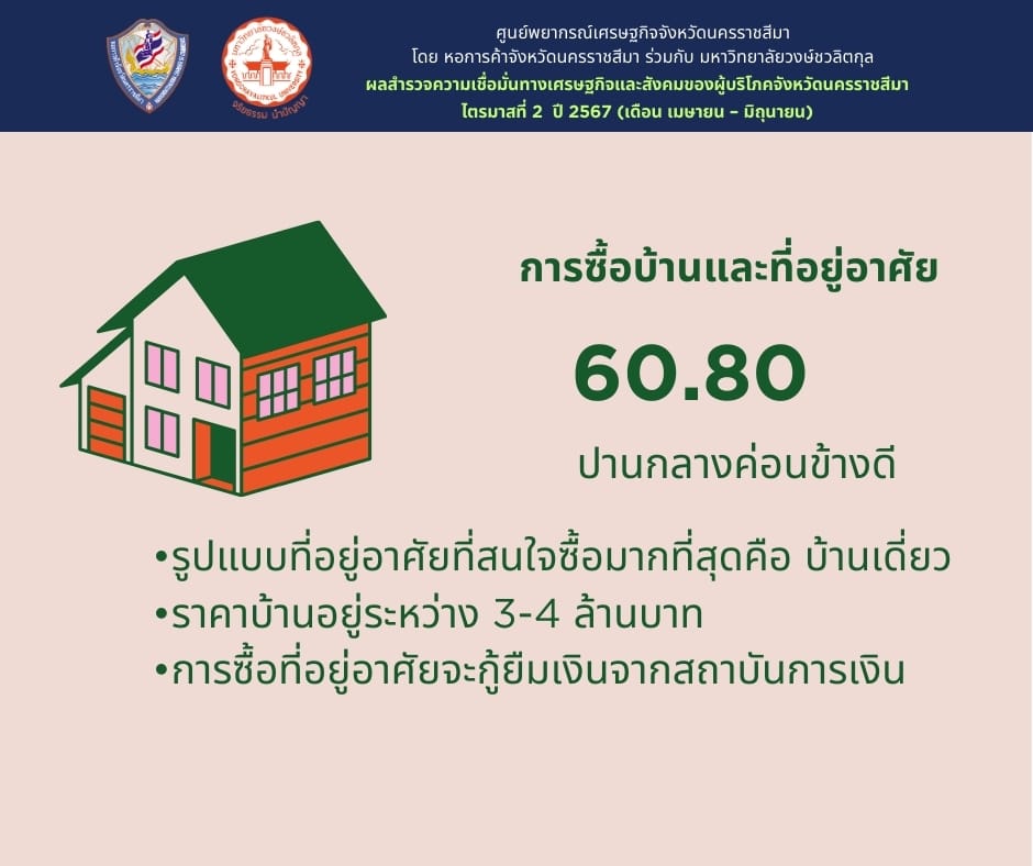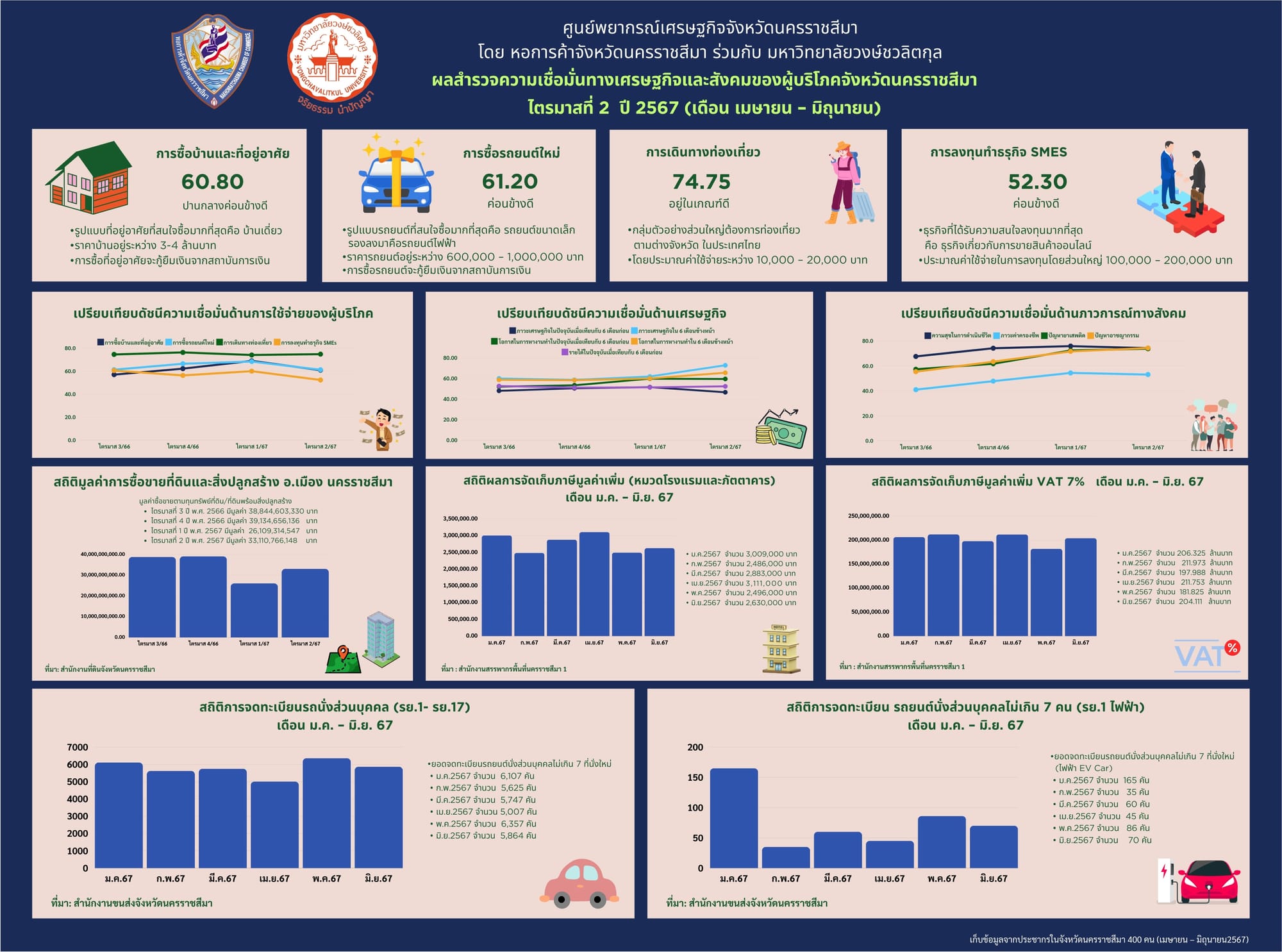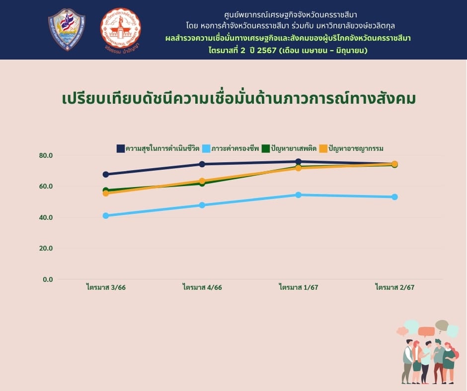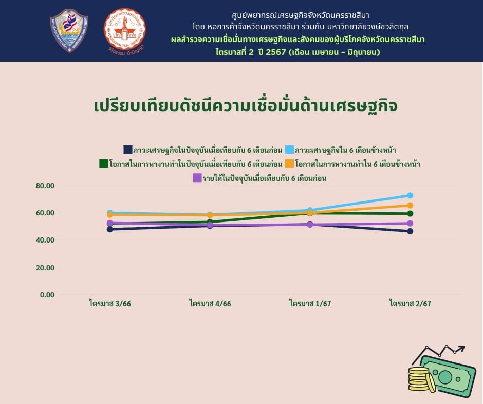 ผลสำรวจความเชื่อมั่นทางเศรษฐกิจและสังคมของผู้บริโภคจังหวัดนครราชสีมา โตรมาสที่ 2 ปี 2567 (เดือน เมษายน-มิถุนายน 2567)