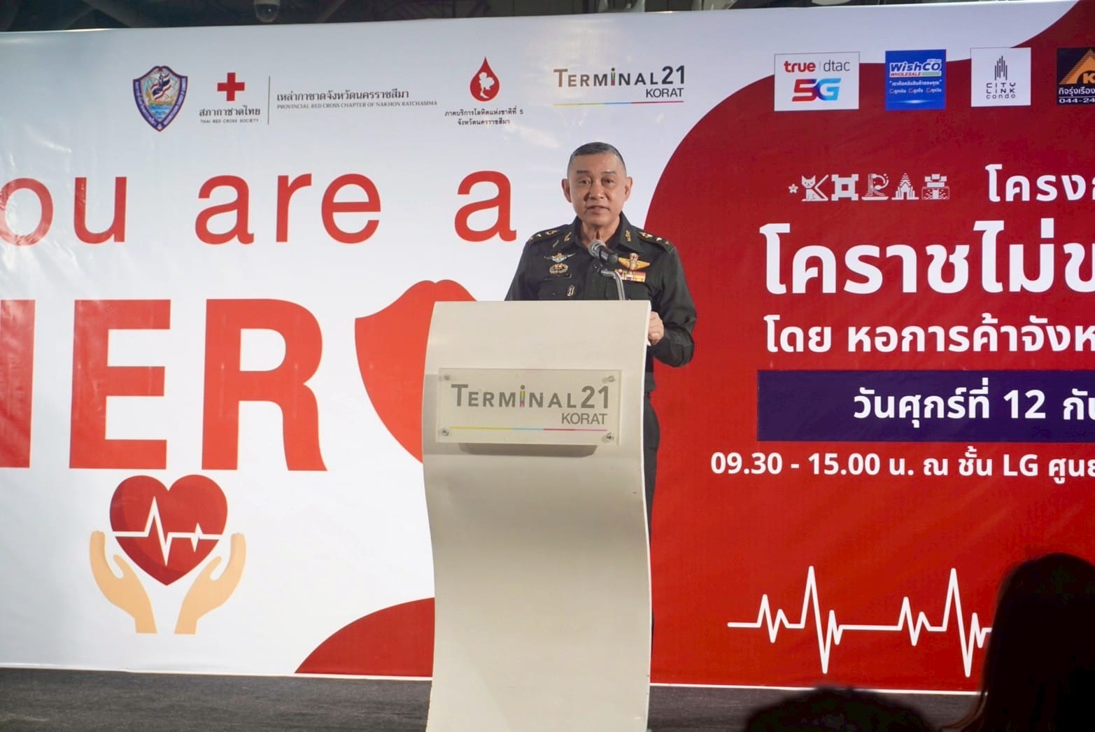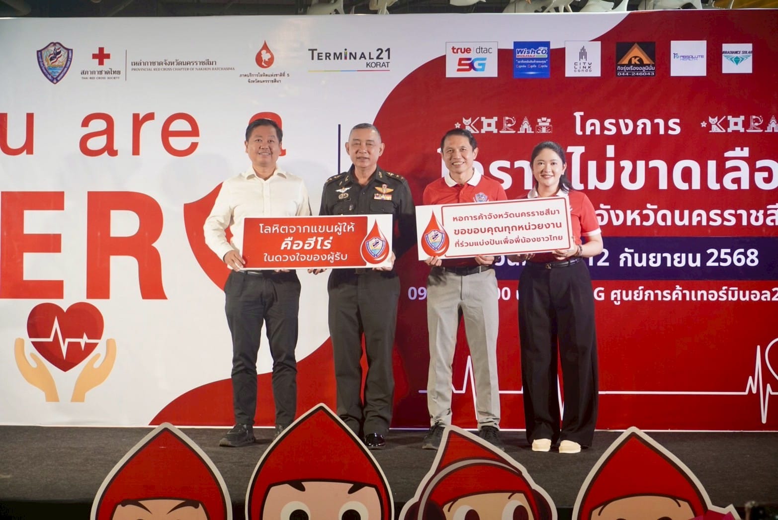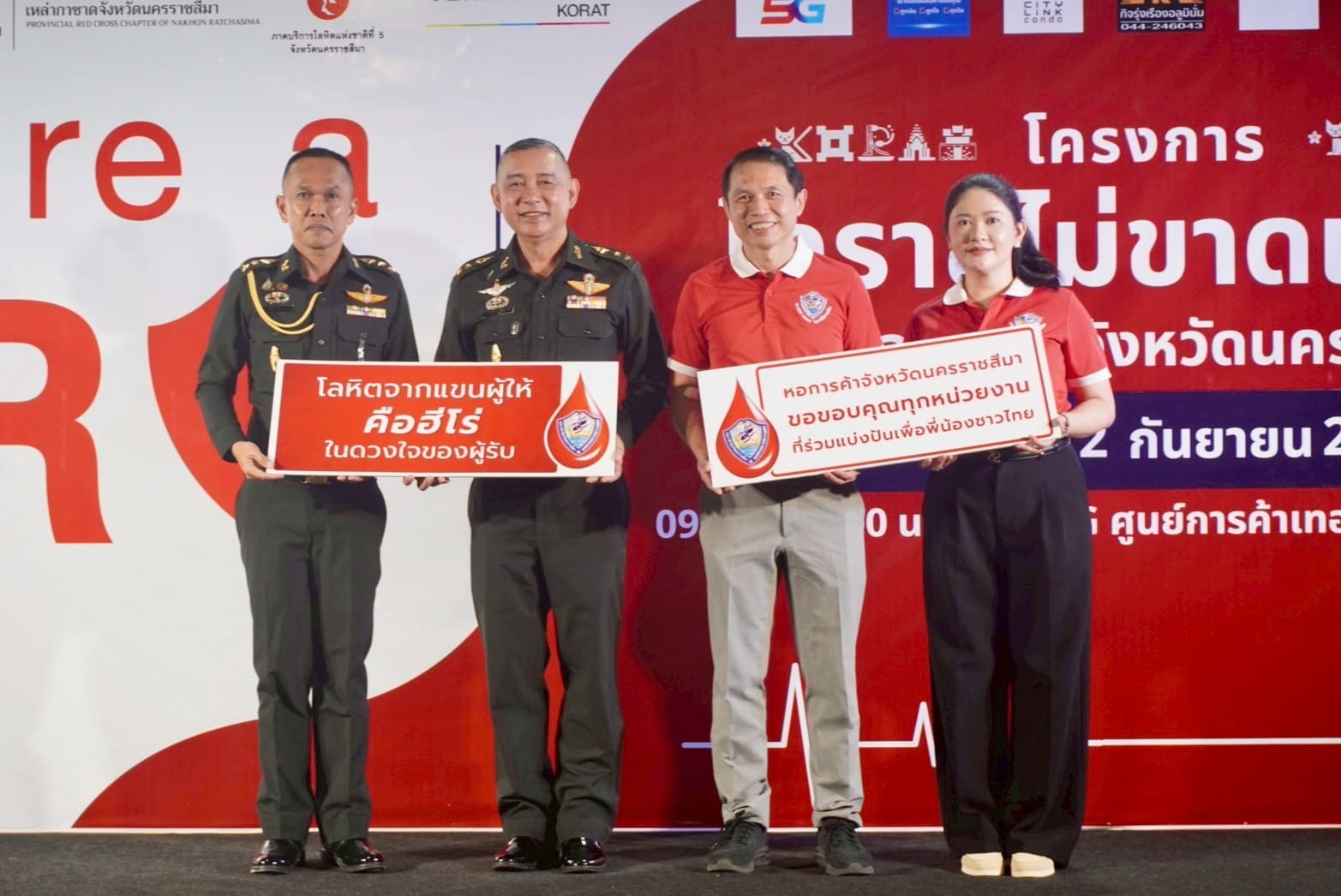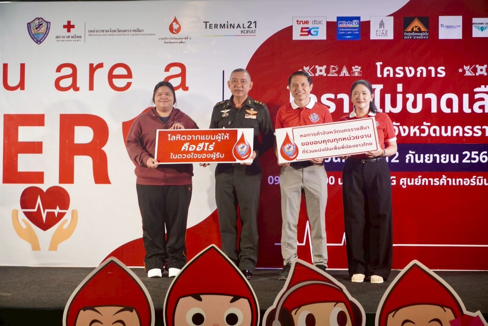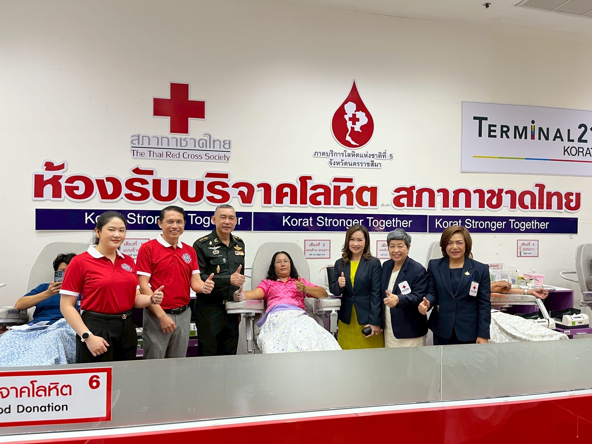 วันที่ 12 กันยายน 2568 ณ ชั้น LG ศูนย์การค้าเทอร์มินอล 21 โคราช หอการค้าจังหวัดนครราชสีมา ร่วมกับ เหล่ากาชาดจังหวัดนครราชสีมา ภาคบริการโลหิตแห่งชาติที่ 5 จังหวัดนครราชสีมา หน่วยงานภาครัฐ ภาคเอกชน ผู้ให้การสนับสนุน จัดกิจกรรมบริจาคโลหิต ภายใต้โครงการ “โคราชไม่ขาดเลือด” ครั้งที่ 3/2568 เพื่อรณรงค์เชิญชวนประชาชนร่วมเป็นผู้ให้ด้วยการบริจาคโลหิต ช่วยเหลือเพื่อนมนุษย์ และสร้างความมั่นคงด้านปริมาณโลหิตสำรองให้เพียงพอต่อการรักษาพยาบาลในโรงพยาบาลเครือข่ายทั่วจังหวัดนครราชสีมา และ จังหวัดใกล้เคียง.ภายในพิธีได้รับเกียรติจาก พันเอกสาธิต อุ่นกาย รองผู้บัญชาการมณฑลทหารบกที่ 21 เป็นประธานเปิดงาน พร้อมด้วย พันตำรวจเอกอดิศร สุวรรณรักษ์ รองผู้บังคับการตำรวจภูธรจังหวัดนครราชสีมา , นายไพจิตร มานะศิลป์ ประธานหอการค้าจังหวัดนครราชสีมา , คุณปพิชญา ณ นครพนม ผู้อำนวยการศูนย์การค้าเทอร์มินอล 21 โคราช , คุณศิริลักษณ์ เพียกขุนทด หัวหน้าภาคบริการโลหิตแห่งชาติที่ 5 สภากาชาดไทย ,นางสาวโสมรัชณู เครืออยู่ ประธานโครงการ “โคราชไม่ขาดเลือด” ครั้งที่ 3, คณะกรรมการหอการค้าฯ , หน่วยงานภาครัฐและภาคเอกชน , ผู้เข้ารับบริจาคโลหิต และ สื่อมวลชน เข้าร่วมงาน.โครงการ “โคราชไม่ขาดเลือด” จัดขึ้นเป็นประจำอย่างต่อเนื่อง เพื่อสร้างจิตสำนึกในการเป็น “ผู้ให้ที่ยิ่งใหญ่” และสร้างเครือข่ายอาสาสมัครผู้บริจาคโลหิตประจำ ซึ่งนับเป็นอีกหนึ่งกิจกรรมสำคัญที่ช่วยยกระดับคุณภาพชีวิตของประชาชนและเสริมสร้างความเข้มแข็งให้กับสังคมโคราชอย่างยั่งยืน โดยมีผู้เข้าร่วมบริจาคในครั้งนี้ 262 ราย ได้โลหิต 124 ยูนิตและบริจาคโลหิตในครั้งถัดไป วันที่ 12 ธ.ค. 68 ณ ชั้น LG ศูนย์การค้าเทอร์มินอล 21 โคราช