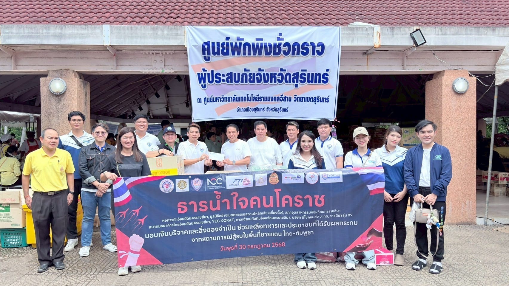 #ส่งมอบธารน้ำใจชาวโคราชสู่ชายแดนไทย – กัมพูชา #หอการค้าจังหวัดนครราชสีมาระดมพลังภาคี ร่วมมอบเงินและสิ่งของช่วยเหลือทหารและประชาชนที่ได้รับผลกระทบ.วันที่ 30 ก.ค. 68 หอการค้าจังหวัดนครราชสีมา นำโดย นายไพจิตร มานะศิลป์ ประธานหอการค้าฯ พร้อมด้วยนายอัฐพล สัมพันธ์วงศ์ รองประธานฝ่ายเศรษฐกิจการค้าและการลงทุน , ดร.ธีรพงศ์ คณาศักดิ์ รองประธานฝ่ายบริหารและสื่อสารองค์กร และเครือข่ายพันธมิตร ได้เดินทางไปยังจังหวัด สุรินทร์ และ บุรีรัมย์ เพื่อมอบเงินบริจาคและสิ่งของจำเป็นแก่หน่วยงานที่เกี่ยวข้อง สำหรับใช้ช่วยเหลือทหารและประชาชนที่ได้รับผลกระทบจากสถานการณ์ชายแดนไทย–กัมพูชา และร่วมลงพื้นที่เยี่ยมให้กำลังใจทหารที่ได้รับบาดเจ็บจากสถานการณ์ดังกล่าว.การดำเนินการในครั้งนี้เป็นความร่วมมือระหว่างหอการค้าจังหวัดนครราชสีมา ร่วมกับ มูลนิธิสว่างเมตตาธรรมสถาน (หลักเสียงเซี่งตึ๊ง) , สภาอุตสาหกรรมจังหวัดนครราชสีมา , สมาคมธนาคารไทยจังหวัดนครราชสีมา , YEC KORAT , ศาลเจ้าแม่ทับทิมจังหวัดนครราชสีมา , บริษัท มีโชคขนส่ง จำกัด , ราชสีมารุ่น 89 ซึ่งทุกภาคส่วนต่างแสดงน้ำใจอย่างเต็มที่ โดยรวบรวมทั้งเงินสดและสิ่งของที่จำเป็น เช่น เวชภัณฑ์ ยารักษาโรค อาหารแห้ง น้ำดื่ม และอุปกรณ์ยังชีพ เพื่อบรรเทาความเดือดร้อนของผู้ที่ได้รับผลกระทบจากสถานการณ์ชายแดน.สรุปยอดเงินบริจาคจากชาวโคราชที่หอการค้าฯ เปิดรับบริจาคไปเมื่อวันที่ 26 – 28 ก.ค. 68 ที่ผ่านมา เป็นยอดรวมทั้งสิ้น 109,000 บาทโดยหอการค้าฯ ได้จัดสรรไปบริจาคดังนี้-มอบให้กับโรงพยาบาลเฉลิมพระเกียรติ ๘๐ พรรษา อ.พนมดงรัก จ. สุรินทร์ 30,000 บาท-มอบให้กับโรงพยาบาลส่งเสริมสุขภาพตำบล จ.ศรีสะเกษ 20,000 บาท-มอบให้กับศูนย์พักพิง จ.บุรีรัมย์ 10,000 บาท-มอบให้กับศูนย์พักพิง จังหวัดสุรินทร์ 10,000 บาท-มอบให้กับทหารที่ได้รับบาดเจ็บคืนวันที่ 28 กค. 68 จ.บุรีรัมย์ 3 นาย จำนวน 6,000 บาท พร้อมกระเช้าให้กำลังใจ -มอบให้หอการค้า จ.อุบลฯ 10,000 บาท-มอบกระเช้าให้กำลังใจกับทหารโคราชที่ได้รับบาดเจ็บ เมื่อเช้าวันที่ 29 -30 กค.68 27 นาย ที่ โรงพยาบาลค่ายสุรนารี 23,000 บาท รวม = 109,000 บาท.“ในนามของชาวโคราช เราขอเป็นส่วนหนึ่งในการส่งต่อกำลังใจให้กับทหารผู้ปฏิบัติหน้าที่ และพี่น้องประชาชนในพื้นที่ชายแดน การช่วยเหลือในครั้งนี้เป็นการแสดงถึงพลังของความร่วมมือของทุกภาคส่วนในจังหวัด ที่ต้องการร่วมกันฝ่าวิกฤตนี้ไปด้วยกัน”