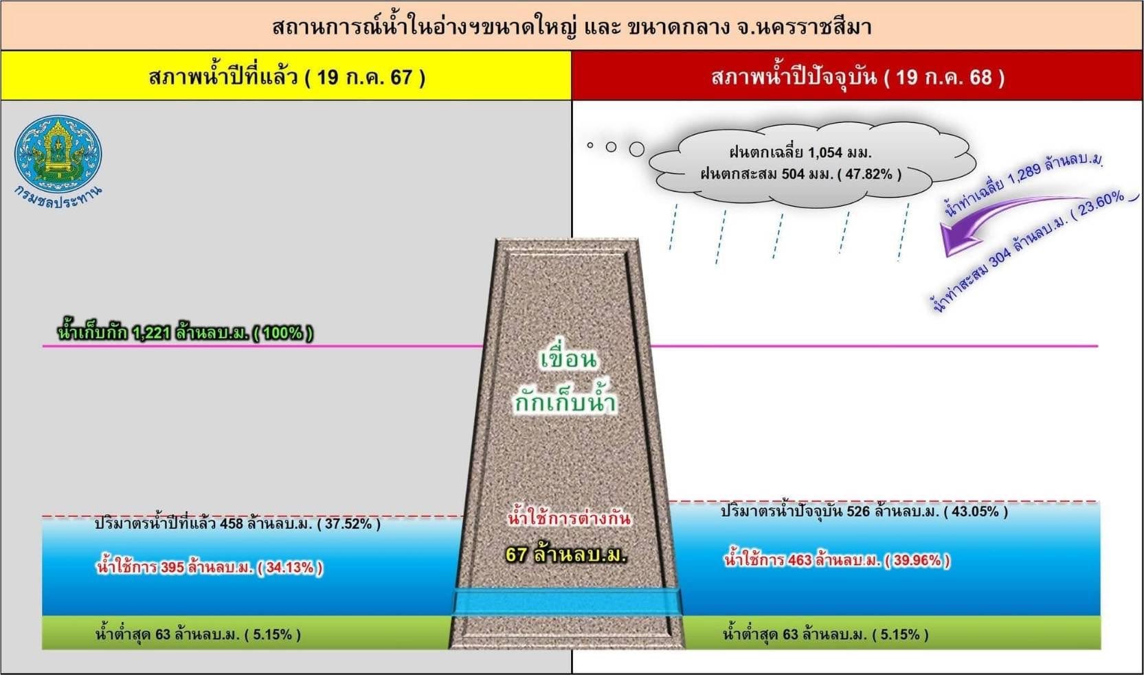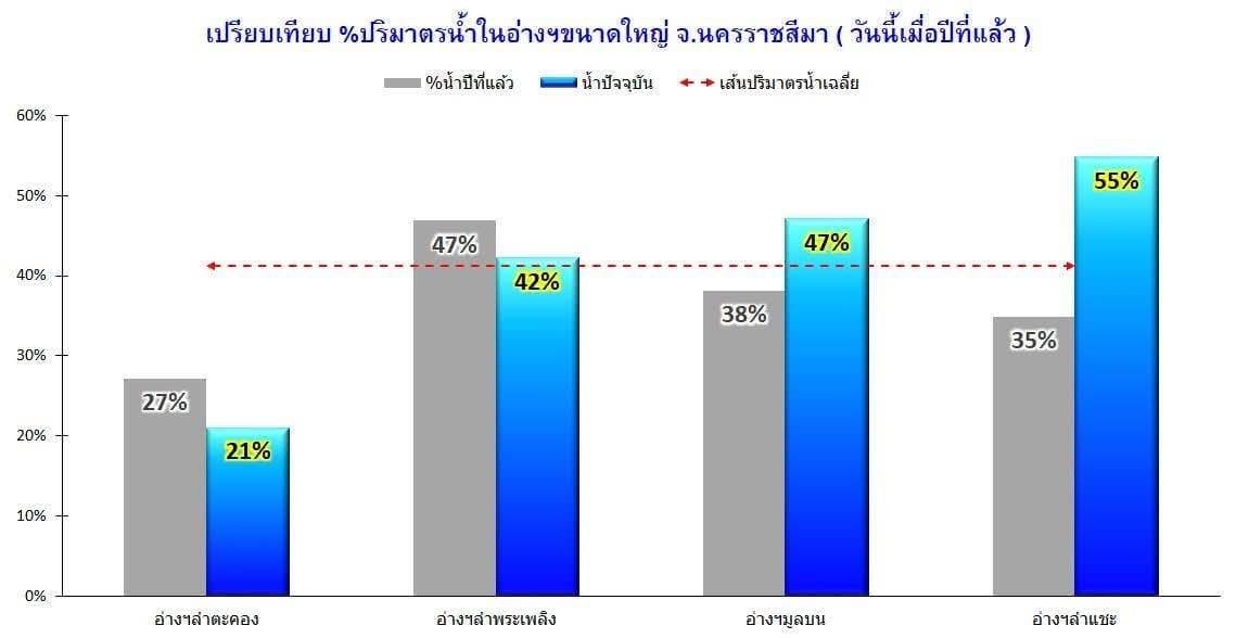 • ปริมาณน้ำรวมทั้งจังหวัด:526 ล้าน ลบ.ม. หรือ 43% ของความจุทั้งหมด (1,221 ล้าน ลบ.ม.)